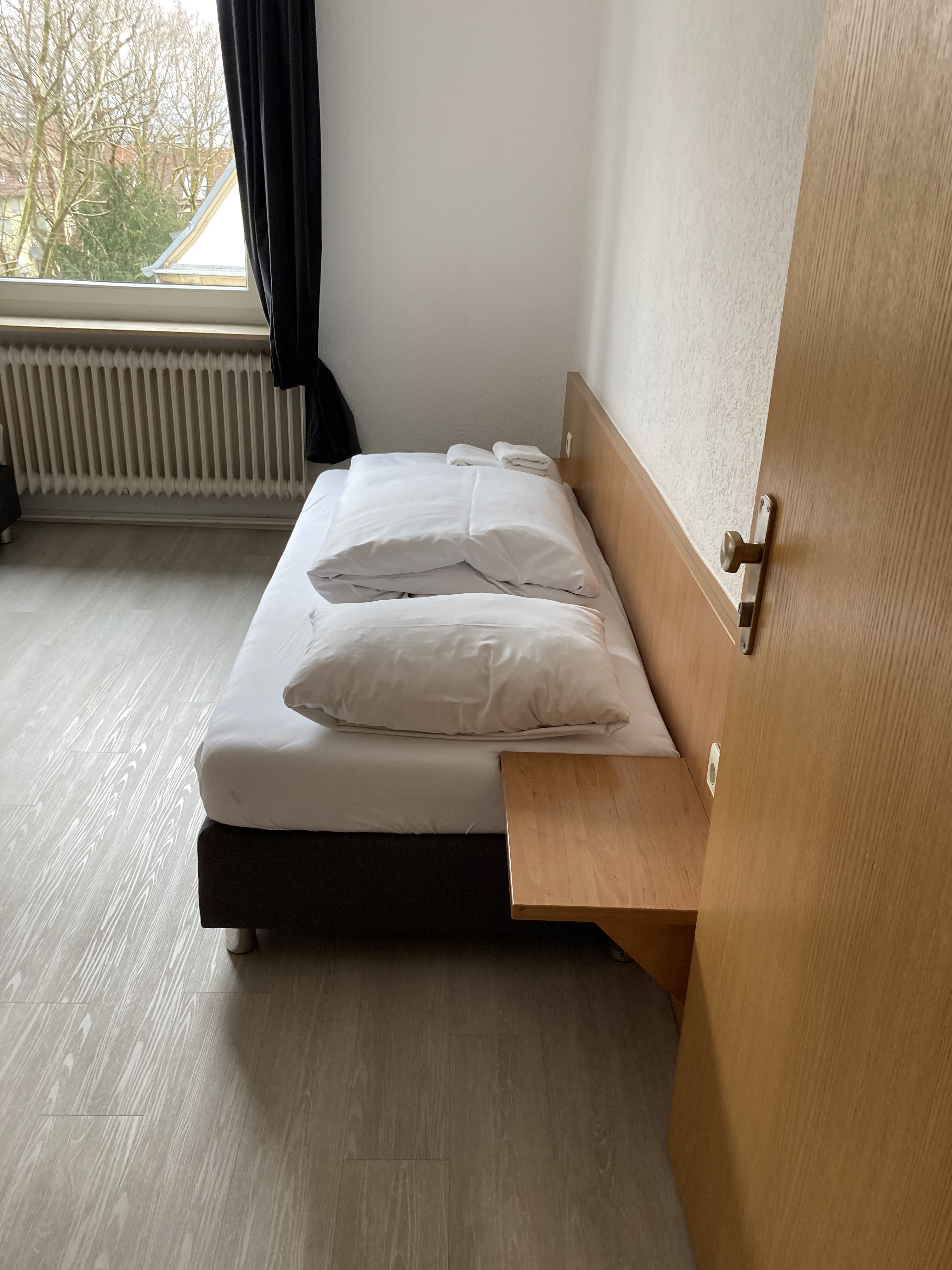 Unser Zweibettzimmer bietet zwei komfortable Einzelbetten, die sowohl für Freunde als auch für Geschäftsreisende ideal sind. Das Zimmer ist mit WLAN, TV, Klimaanlage, Schreibtisch, Schrank und Sitzgelegenheit ausgestattet. Handtücher, Haartrockner sowie Shampoo & Seife stehen Ihnen selbstverständlich zur Verfügung, sodass Sie entspannt anreisen können.